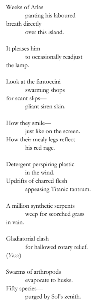 Kali Richmond lives in the North of England. Her poetry has featured in various publications, including Gutter, The Babel Tower, Green Ink Poetry, Coven, Jaden Magazine and Porridge. Her debut pamphlet, Gradual Reduction to Bone, is out this summer with Nine Pens.