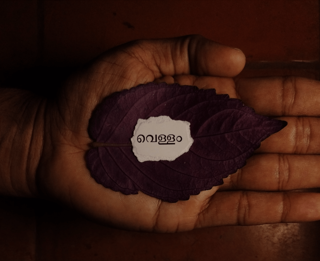 Materials used: Human body, printed piece of paper speaking ‘water’, leaf of Hemigraphis