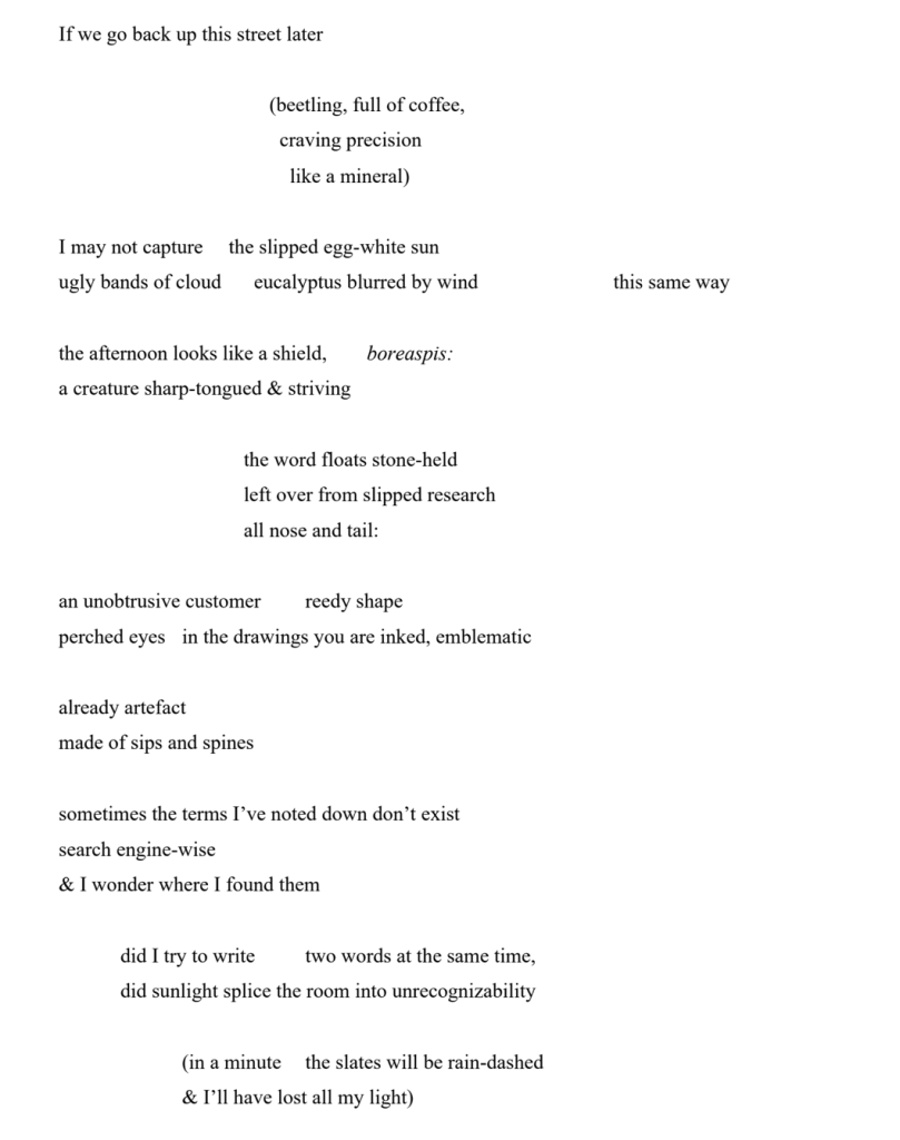 Alicia Byrne Keane is a final year PhD student from Dublin, Ireland. Alicia has a first class honours degree in English Literature and French from Trinity College Dublin and a MSt. in English Literature 1900-Present from Oxford University, and is currently finishing an Irish Research Council-funded PhD study that problematizes ‘vagueness’ and the ethics of translation in the work of Samuel Beckett and Haruki Murakami, at TCD. Alicia’s poetry has been published in The Moth, The Colorado Review, The Cardiff Review, The Berkeley Poetry Review, Banshee, Bayou, the [PANK] blog, Entropy, Parentheses Journal, Abridged, and the Honest Ulsterman, among others. Alicia’s poem ‘surface audience’ was nominated for a Pushcart Prize and a Best of the Net Prize; the short story ‘Snorkels’ was featured in Marrowbone Books’ anthology ‘The Globe and Scales’, alongside the work of other Irish writers such as Dermot Bolger, Mia Gallagher, and Louise Nealon. The poem ‘Cloud / land arc’ was nominated for the Orison Anthology; the poem ‘Temenos’ came second place in Oregon Poetry Association’s Fall 2020 Contest. Alicia is in receipt of an Arts Council Agility Award for her poetry and illustration.