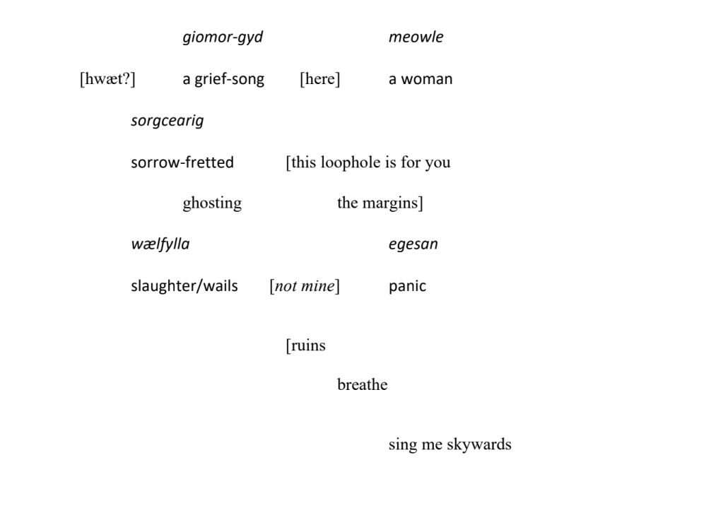 Laura Varnam is the Lecturer in Old and Middle English Literature at University College, Oxford. Her poetry is inspired by the medieval texts that she teaches, in particular the Old English epic Beowulf. Her poetry has been published in Atrium, Acropolis Journal, Crow of Minerva, Dreich, Green Ink Poetry, Ink Sweat & Tears, The Oxford Magazine, and is forthcoming in Bad Lilies, MIR Online, After…Poetry, and (with a creative-critical essay) in the academic journal postmedieval.