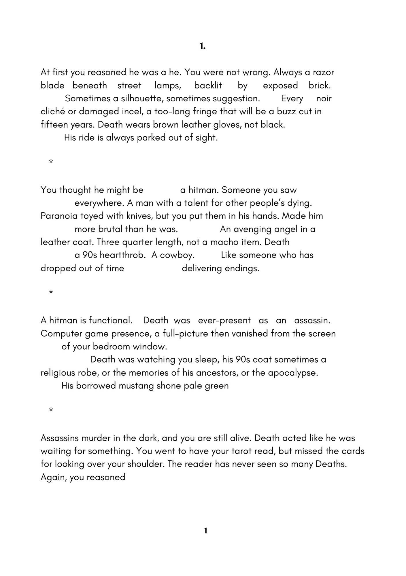 “Grief is the thing in pleather: iterative, reshuffling noir signifiers, re-marking punctuation, always to the same end. As Bussey-Chamberlain writes: ‘Last time was not the last time; / I am here again.’ From open field composition glittering in headlit streaks to the short gasps of Emily Dickinson’s lines, in the narrow time of birthing and the contained prose poems of time lived, this brief collection packs in life after life after life, an expansive exploration of Dickinson’s choice of “kindly” for Death’s stop, with all the sardonic seriousness, the deadpan profound, that characterises Bussey-Chamberlain’s work.” (So Mayer)