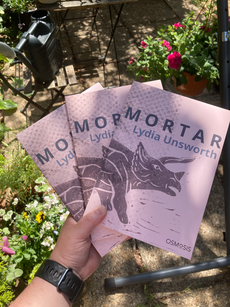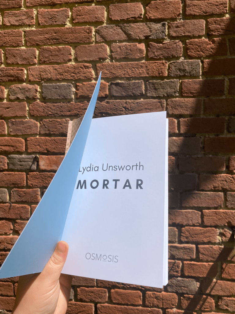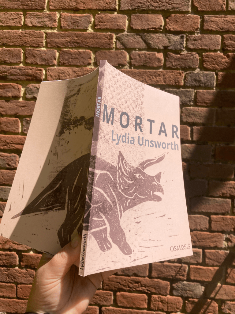 “In the essay “Slow Death”, Lauren Berlant considers that “agency can be an activity of maintenance, not making”, to withstand unequal infrastructures set up to dominate and corrode. Lydia Unsworth’s collection Mortar is about as radical a poetics of maintenance as I can think of. It tunes its attention to materials, structures, and forms of getting by as well as the incursions that make so frequently such a task: Bakelite, dangling sofas on cranes, baths falling through ceilings, moulding bicycle seats, bus shelter overhangs, shrink wrap, and sun tanned hands. Unsworth’s poems wrap and envelop, touch and lean, shelter and protect. I don’t ever want to leave the stunning language structures of this book which is just as well because the five mattresses by the door would make it quite a squeeze.” (Colin Herd)