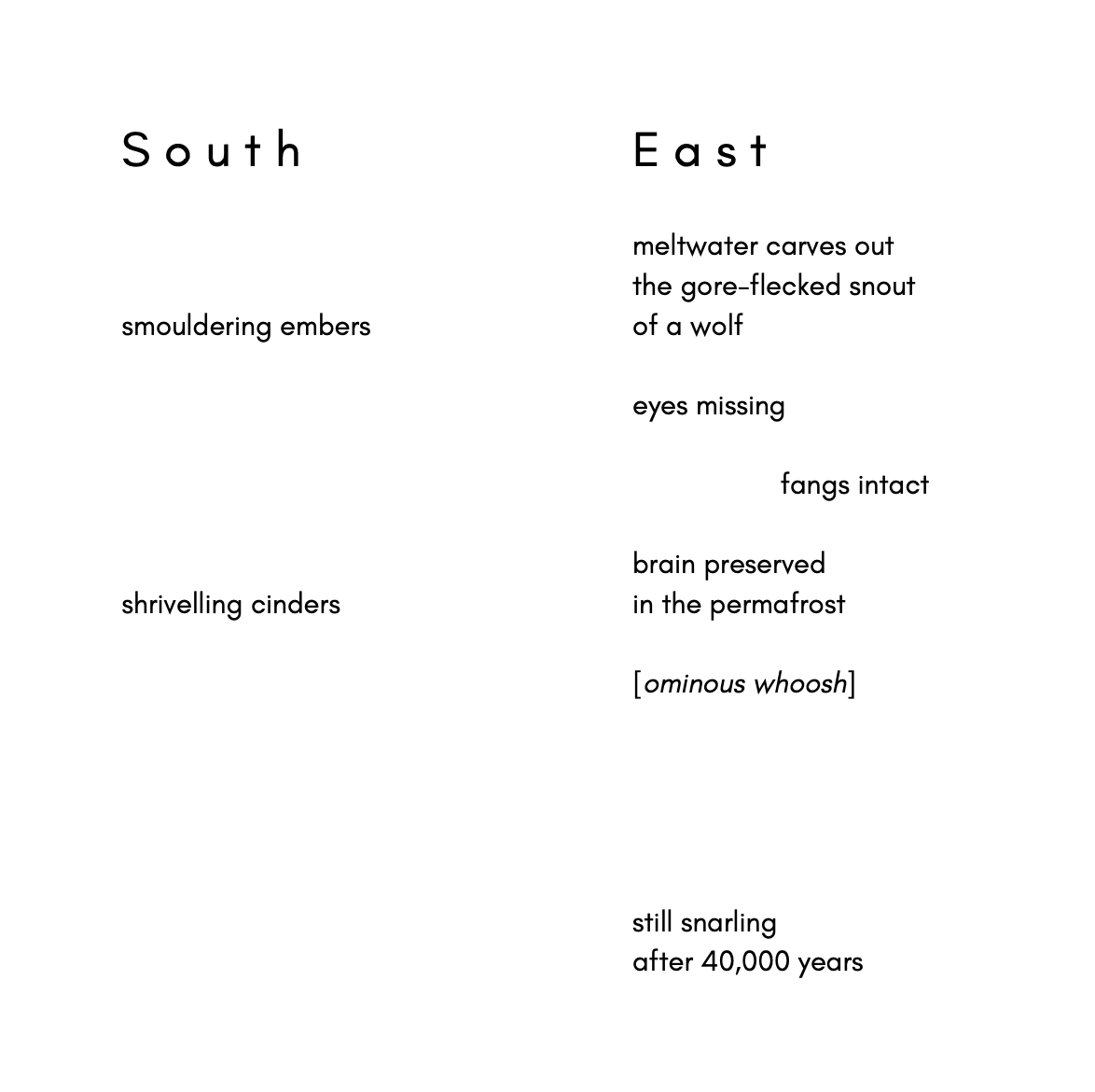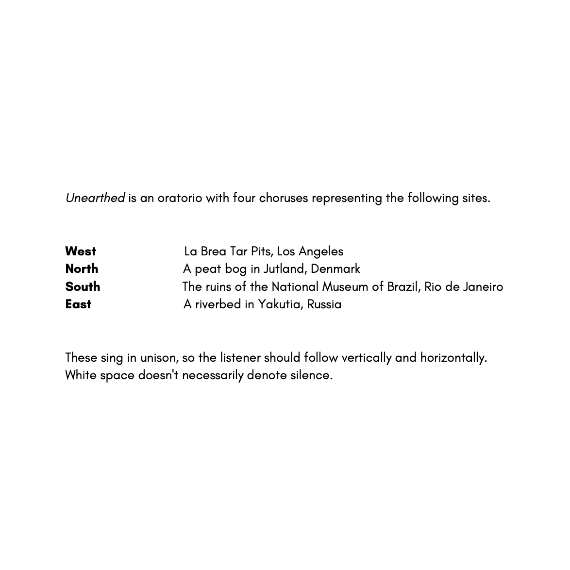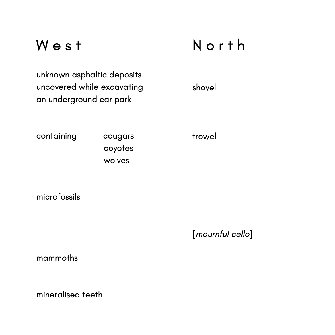 ‘A global, multi-site specific libretto, Unearthed performs archaeology as poetry, ‘the omnipresence / of the present / historical moment’. The past and international timezones exist at once, creating a swirl of narrative pleasures. Yet the shards of text imply the land Boothroydrepresents has been neglected: ‘have you not / mercy / mercy’. It’s hard not to think about belief systems founded on directionality, as if the text is being compromised by rouge qi; as if the ancestors of place are disturbed. Archaeology becomes obituary as these histories press on the present. Unearthed is thrilling and heartfelt to read, and inspiring as it opens endless possibilities for performance.’ (Richard Capener)